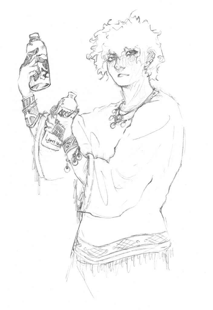 cursed child between a human and a mermaid, he grew up alone in the streets. there, he learned how to do anything with barely nothing; like clothes, weapons and most importantly alchemical concoctions & bombs.